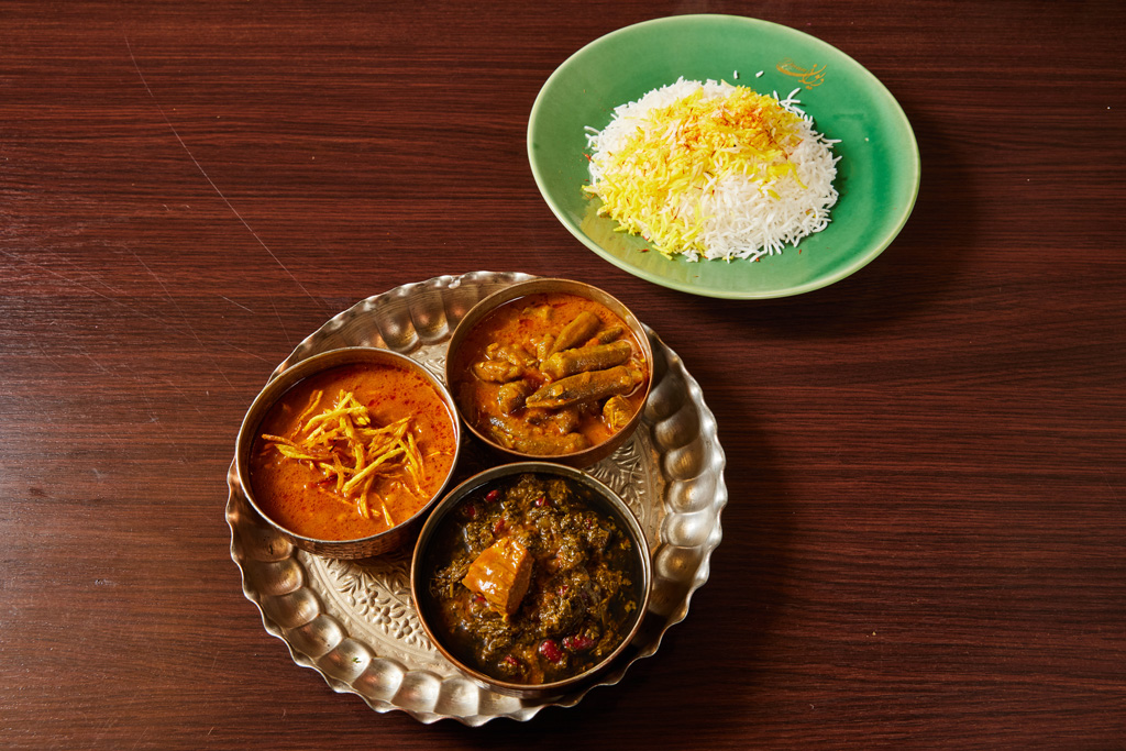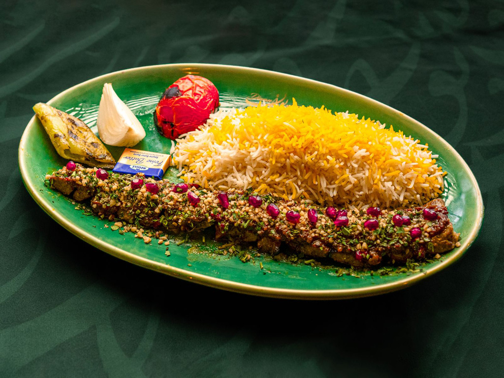 Bestehend aus Tschendjeh, Djudje, Kubideh, serviert mit Basmatireis